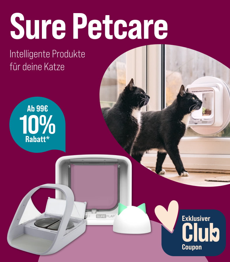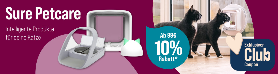*Gültig vom 03.11.2025 bis 30.11.2025 nur für ZooRoyal Club Mitglieder. 10% Rabatt ab 39 € auf Sure Petcare Produkte. Gilt nur auf ausgewählte Produkte dieser Aktionsseite. Gilt nur im ZooRoyal Online-Shop und nicht in den ZooRoyal Fachmärkten.