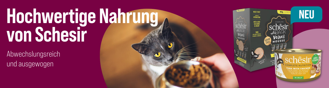 - 11 %SchesirSchesir Cat Complete Thunfisch mit Wolfsbarsch Jelly 6x50 gUVP 7,49 € (-10.68%)6,69 €22,30 € / kg