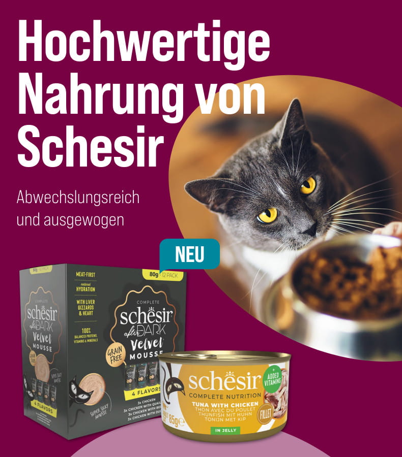 - 11 %SchesirSchesir Cat Complete Thunfisch mit Huhn in Jelly12x85 gUVP 20,28 € (-10.8%)18,09 €17,74 € / kg