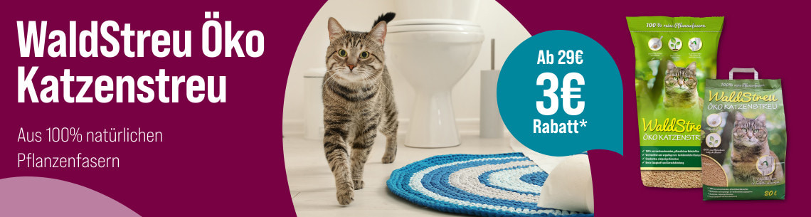 *Gültig vom 03.11.2025 bis 30.11.2025 nur für ZooRoyal Club Mitglieder. Spare 3 € ab 29 € Einkaufswert auf WaldStreu Öko Katzenstreu. Gilt nur auf ausgewählte Produkte dieser Aktionsseite. Gilt nur im ZooRoyal Online-Shop und nicht in den ZooRoyal Fachmärkten.