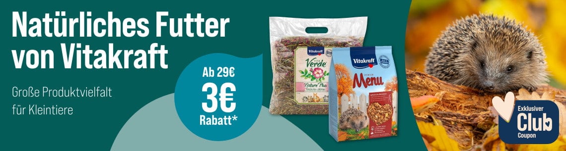 *Gültig vom 01.12.2025 bis 28.12.2025 nur für ZooRoyal Club Mitglieder. Spare 3 € ab 29 € auf Vitakraft Kleintierfutter. Gilt nur auf ausgewählte Produkte dieser Aktionsseite. Gilt nur im ZooRoyal Online-Shop und nicht in den ZooRoyal Fachmärkten.
