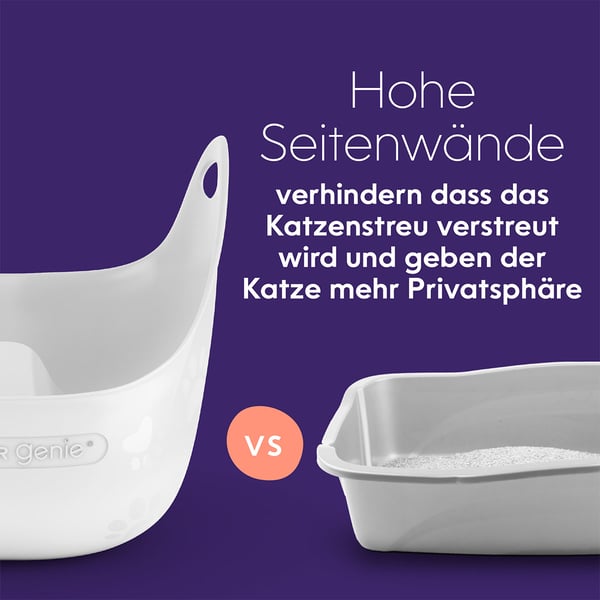 Die einzigartige Form der Litter Genie® LitterBox erleichtert dir die Reinigung und ist bequem für deine Fellnase. Eine Win-Win-Situation! Mit den integrierten Griffen, den weichen, abgerundeten Ecken und den hochflexiblen Kanten lässt sich die Katzentoilette schnell und einfach reinigen. Deine Katze wird sie lieben und du auch!