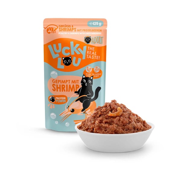 Ich habe etwas Besonderes für dich - MICH! Meine Katzennahrung enthält mehr als 94 % Fleisch oder Fisch, Innereien und Kochbrühe sowie etwa 2 % pflanzliche Kohlenhydrate, 1 % Mineralstoffe und einen kleinen Anteil eines qualitativ hochwertigen Öls. Da ich klug bin, sind in meinem Futter keine Getreideprodukte, kein Gluten und keine Zuckerzusätze enthalten. Ich schätze einfach echten Geschmack! Mein Futter ist speziell auf unsere verschiedenen Lebensphasen und individuellen Anforderungen zugeschnitten. Eintöniges Standardfutter gibt es anderswo - Lucky Lou ist in vielen verschiedenen Varianten erhältlich. Check das gleich mal aus!
