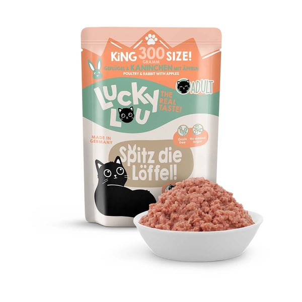 Langweiligen Einheitsfraß gibt’s woanders – Lucky Lou Lifestage ist in 18 verschiedenen Sorten erhältlich. Damit du deinen Katzen immer frisches Futter servieren kannst, gibt es Lucky Lou Lifestage in Pouchbeuteln mit 125 g Inhalt sowie in Dosen zu 200 g und 400 g. Und Multipacks gibt’s natürlich auch!