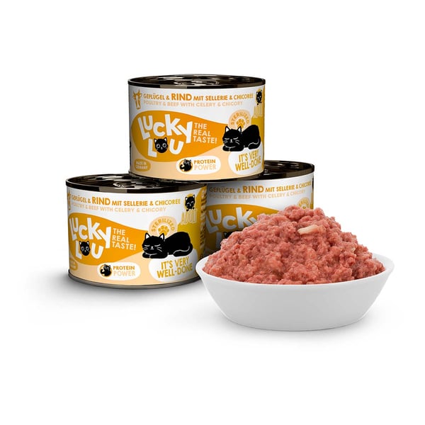 Langweiligen Einheitsfraß gibt’s woanders – Lucky Lou Lifestage ist in 18 verschiedenen Sorten erhältlich. Damit du deinen Katzen immer frisches Futter servieren kannst, gibt es Lucky Lou Lifestage in Pouchbeuteln mit 125 g Inhalt sowie in Dosen zu 200 g und 400 g. Und Multipacks gibt’s natürlich auch!