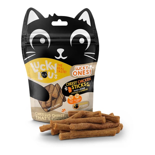Meine Lucky Ones Cubes bieten als superfleischige, kullerbare Leckerlis viel Spielspaß und abgefahrenes Beute-Feeling. Hinterher fetzen, Beute schnappen und genießen ist ein Riesenspaß für uns Katzen. Lucky Ones Sticks liefern so viele geniale Möglichkeiten, um Spaß zu haben! Katzenfreunde können sie an eine Schnur binden und mit ihrer Katze fangen spielen. Das wird ne Gaudi!