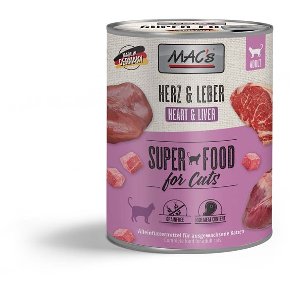 MAC's Cat Nassfutter Fleischmenü Herz & Leber bietet deiner Katze eine ausgewogene Mahlzeit, die speziell auf ihre Bedürfnisse abgestimmt ist. Dank der hochwertigen Zutaten und der wissenschaftlich entwickelten Rezeptur erhält deine Katze eine nahrhafte Mahlzeit, die sie mit wichtigen Nährstoffen versorgt. Die Kombination aus Herz und Leber sorgt für einen leckeren Geschmack, den deine Katze lieben wird.