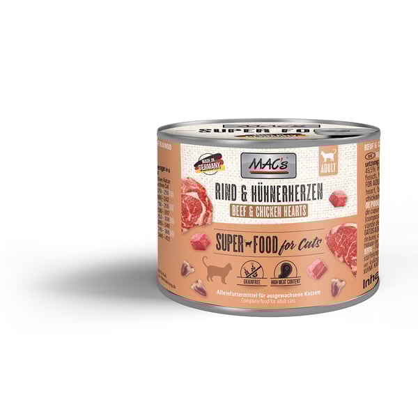 Das MAC's Cat Fleischmenü Rind und Hühnerherzen ist ein hochwertiges Nassfutter, das speziell auf die Bedürfnisse von erwachsenen Katzen abgestimmt ist. Es enthält eine ausgewogene Mischung aus Rind und Hühnerherzen, die deiner Katze ein besonderes Geschmackserlebnis bieten. Die Rezeptur basiert auf wissenschaftlichen Erkenntnissen und garantiert eine hohe Qualität der Inhaltsstoffe.
