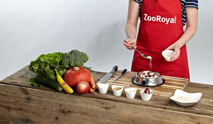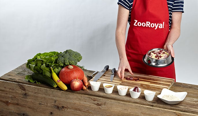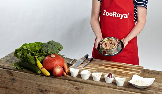 Hier findest du schmackhafte Rezeptideen für deinen Hund, die das Potential zum neuen Lieblingsgericht haben. Aber auch, wenn er ein bestimmtes ganz besonders mögen sollte: Bitte achte stets auf eine ausgewogene und vielseitige Ernährung beim BARFen. Die Mengen der einzelnen Zutaten variieren je nach Größe, Gewicht und Alter des Hundes individuell. Bei Unsicherheiten diesbezüglich wende dich besser an deinen Tierarzt mit Spezialisierung auf Ernährung oder eine andere Hundeernährungsberatung. Wir wünschen dir viel Spaß bei der Zubereitung und deinem Liebling guten Appetit!