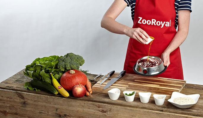 Hier findest du schmackhafte Rezeptideen für deinen Hund, die das Potential zum neuen Lieblingsgericht haben. Aber auch, wenn er ein bestimmtes ganz besonders mögen sollte: Bitte achte stets auf eine ausgewogene und vielseitige Ernährung beim BARFen. Die Mengen der einzelnen Zutaten variieren je nach Größe, Gewicht und Alter des Hundes individuell. Bei Unsicherheiten diesbezüglich wende dich besser an deinen Tierarzt mit Spezialisierung auf Ernährung oder eine andere Hundeernährungsberatung. Wir wünschen dir viel Spaß bei der Zubereitung und deinem Liebling guten Appetit!