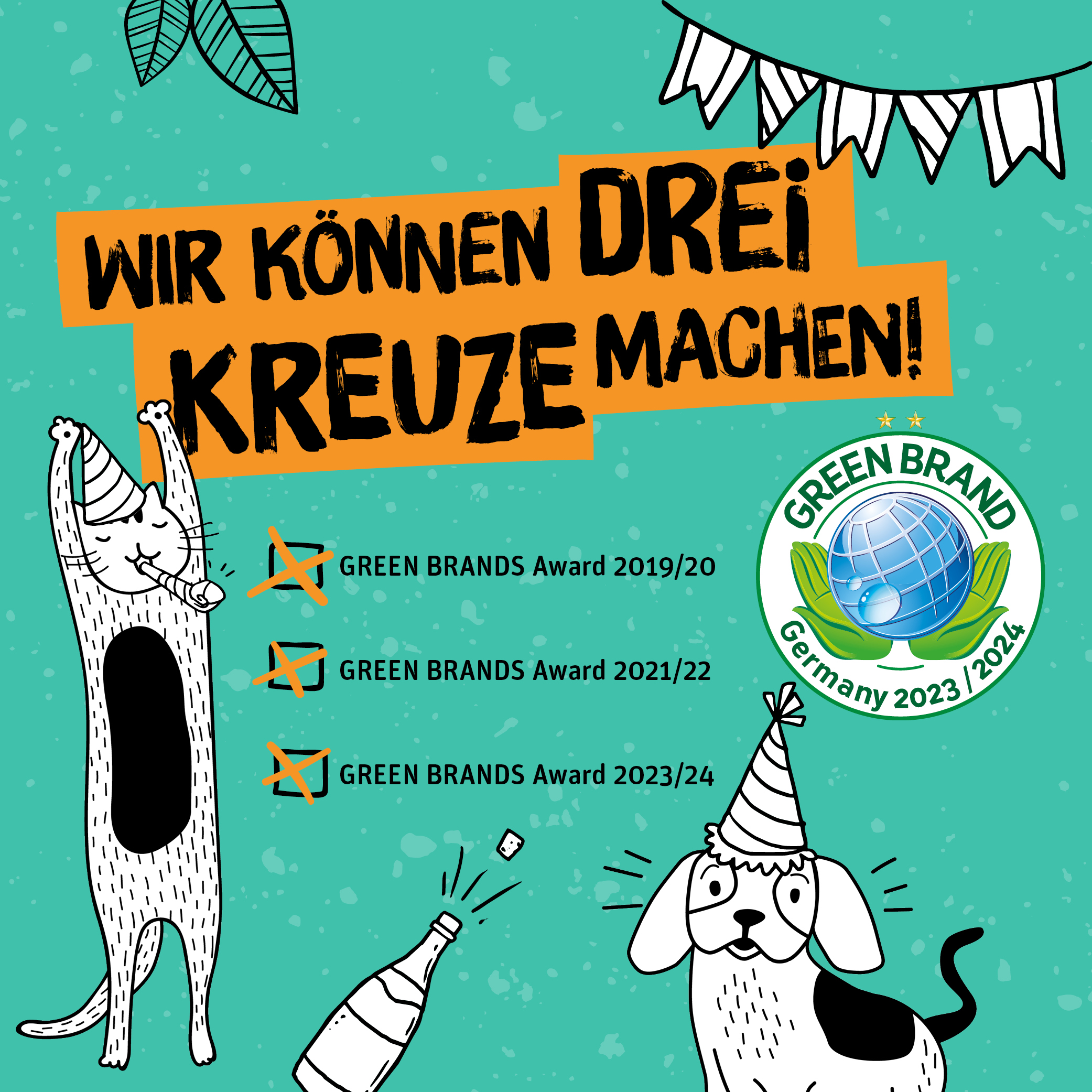 Green Petfood konnte zum dritten Mal in Folge die Green Brands Jury von seinem nachhaltigen Markenkonzept überzeugen und freut sich riesig über die Auszeichnung als Green Brand 2023/24. Damit ist Green Petfood eine der ersten Marken in der Petfood- Branche, die diese Auszeichnung so häufig hintereinander erhalten hat.