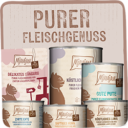 Für alle, die beim Futter keine Kompromisse machen: Unsere Pur-Sorten bestehen aus reinem Fleisch – und sonst nichts. Keine Gemüsestückchen, keine Zusätze, keine versteckten Inhaltsstoffe. Nur purer Fleischgenuss, wie ihn dein Hund liebt und wie es seiner natürlichen Ernährung entspricht.