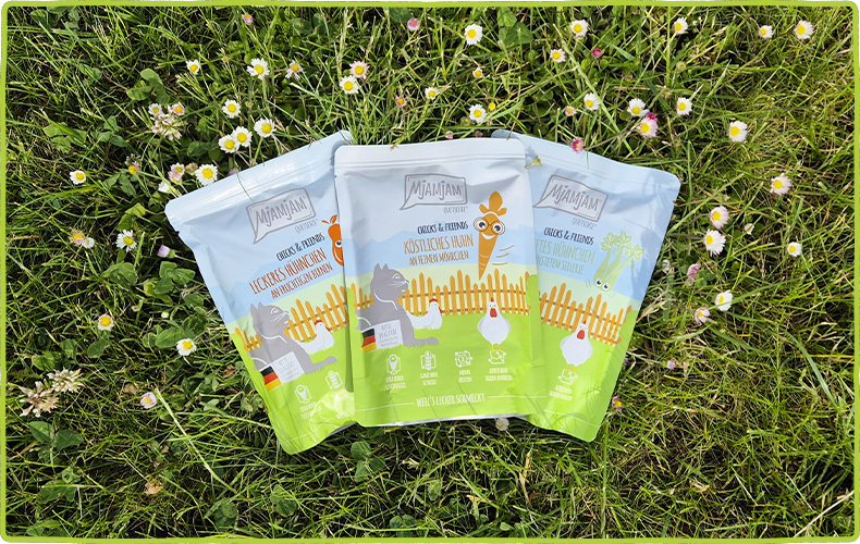 Was zeichnet für dich „Natürlichkeit“ aus? Ist es eine getreidefreie Ernährung? Fleisch aus kontrollierten Betrieben? BIO-zertifizierte Zutaten? Zum Glück vereinen wir all das in unseren „natürlich lecker“-Sorten! Denn hier leisten wir nicht nur einen Beitrag zum Thema Umweltschutz, sondern auch zur gesunden Ernährung deines Lieblings. Ein extra hoher Fleischanteil, kombiniert aus leckeren, gesunden und vor allem natürlichen BIO-Zutaten. Wir von MjAMjAM setzen nicht nur auf eine natürliche Zusammensetzung unserer Mahlzeiten, sondern auch auf ausgewählte und streng kontrollierte Zutaten. Aus diesem Grund beziehen wir unser Fleisch nur aus kontrollierten Betrieben. Denn Massentierhaltung kommt bei uns nicht in die Dose! Nicht umsonst sind wir Teil der PETA-Listung zu tierversuchsfreier Nahrung. Lust auf Natur?