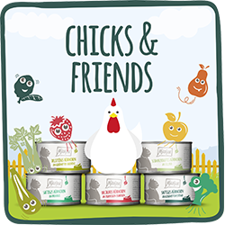 Entdecke die genialen Chicks & Friends – die leckersten Hühnchen-Sorten für glückliche und aktive Samtpfoten. Jede Sorte dieser Linie kombiniert saftiges Hühnchen mit köstlichem Gemüse oder Obst wie Spinat, Apfel, Erdbeere, Zucchini, Sellerie, Birne und Brokkoli. Schmeckt zum Schnurren lecker. Die ausgewogenen Mahlzeiten sind getreidefrei, reich an Fleisch und voller Vitamine sowie Nährstoffe. Ideal für Katzenbesitzer, die nur das Beste für ihre Lieblinge wollen. Gönne deiner Katze ein geschmackliches Abenteuer und unterstütze gleichzeitig ihre Fitness. MjAMjAM – weil deine Katze es wert ist!