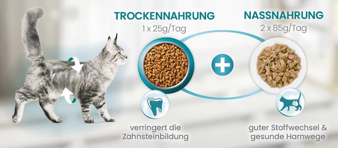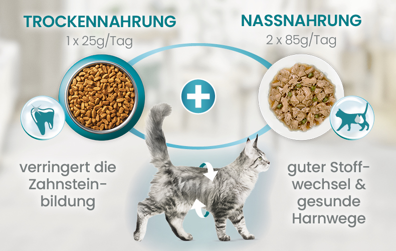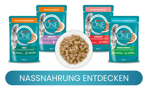 Lassen Sie Ihre Katze von den Vorteilen beider Futterarten profitieren und geben Sie ihr den Geschmack, den sie liebt – mit der PURINA ONE® Mischfütterung. Die Trockennahrung sorgt für eine verbesserte Zahngesundheit, während die Nassnahrung eine gesteigerte Flüssigkeitsaufnahme sichert. Unabhängig davon, wie Sie sich entscheiden – mit dem PURINA ONE® Ernährungskonzept bieten Sie Ihrer Katze eine ausgewogene und vollwertige Nahrung mit allen wichtigen Nährstoffen, die sie braucht.