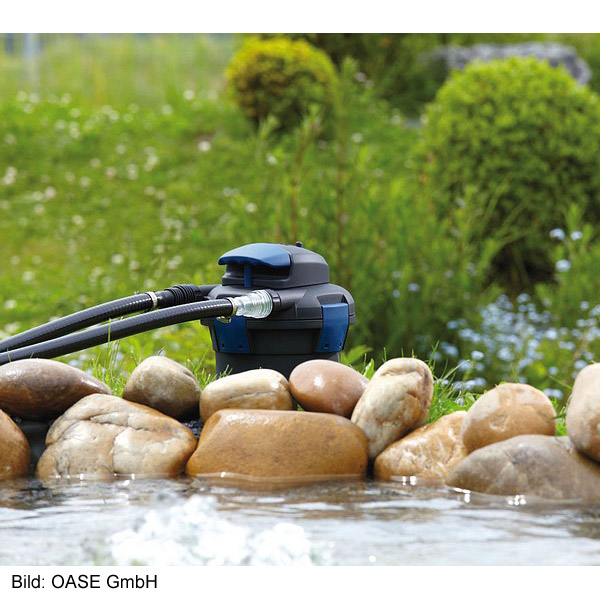 An den Filter, fertig, los: Das BioPress Set 6000 ist ideal für jeden Start Up - Teichbesitzer, denn das Komplettset inkl. 5 m Schlauch ist ganz einfach eingebaut und angeschlossen. Es zeichnet sich besonders durch seine effektive Filterleistung aus, denn die im Set enthaltene 40 Watt Filterpumpe, der Druckfilter und das darin integrierte 9 Watt UVC-Vorklärgerät sind perfekt aufeinander abgestimmt. Teiche bis zu 6 m³ (bei Fischbesatz bis zu 3 m³) erhalten garantiert klares Wasser, das sogar zu einem höher gelegenen Bachlauf befördert werden kann. Verschmutztes Wasser wird mit einer Leistung von 2500 l/h zum Filter transportiert. Seine einfache, patentierte Handhabung überzeugt, denn Ihre Hände bleiben sauber beim Reinigen der Filterschwämme, deren Verschmutzung sogar außen angezeigt wird. Und damit keiner den Filter sehen kann, lässt der sich fast komplett eingraben. Vertrauen Sie auf OASE-Qualität.