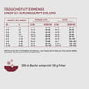 Verteile die Futtermenge im Idealfall auf 2 Mahlzeiten täglich. Stelle immer sauberes, frisches Wasser zur Verfügung.