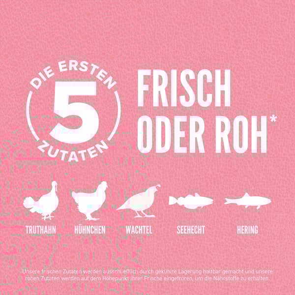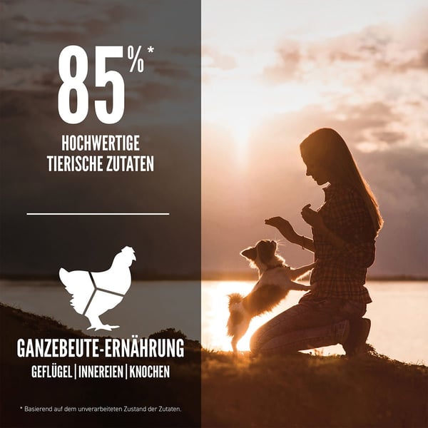 Dieses Trockenfutter besteht zu 85% aus hochwertigen tierischen Zutaten, darunter frisches oder rohes Muskelfleisch, Innereien und Knochen. Mit einem Gefriergetrockneten Überzug wird der natürliche Geschmack intensiviert, was deinen Hund instinktiv anzieht. Die Rezeptur ist getreidefrei und verzichtet auf Kartoffeln, Tapioka und Pflanzenproteinisolate, sodass auch empfindliche Hunde es gut vertragen. Du kannst sicher sein, dass dein Hund nährstoffreich und ausgewogen ernährt wird.