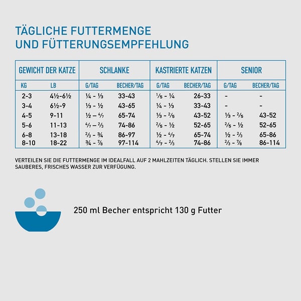 | Gewicht der Katze | Gewicht halten | Gewicht halten bei kastrierten Katzen | Senior |