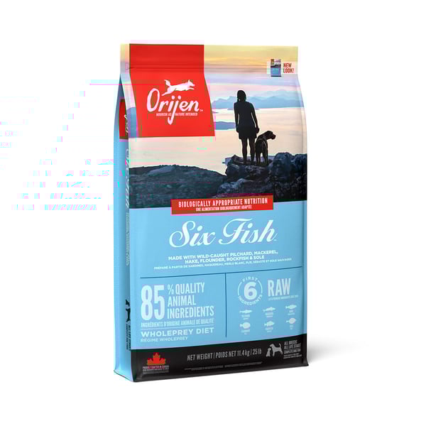 Orijen Dog Six Fish ist ein Trockenfutter, das speziell für Hunde aller Rassen und Lebensphasen entwickelt wurde. Mit Fischzutaten aus Wildfang, darunter Sardine, Makrele und Hecht, bietet es eine proteinreiche Ernährung, die optimal auf die natürlichen Bedürfnisse deines Hundes abgestimmt ist. Dieses Futter ist getreidefrei und enthält keine pflanzlichen Proteinisolate, was es besonders für Hunde mit sensibler Verdauung geeignet macht.