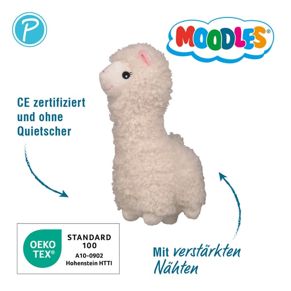 Mit dem Petlando Hundespielzeug Moodles Lama Lino bietest du deinem Hund ein sicheres und schadstofffreies Spielvergnügen. Das OEKO-TEX und CE zertifizierte Material stellt sicher, dass keine schädlichen Stoffe enthalten sind, sodass dein Vierbeiner unbedenklich spielen und kuscheln kann. Die sorgfältige Verarbeitung und die hochwertigen Materialien machen dieses Kuscheltier zu einem langlebigen Begleiter für deinen Hund.