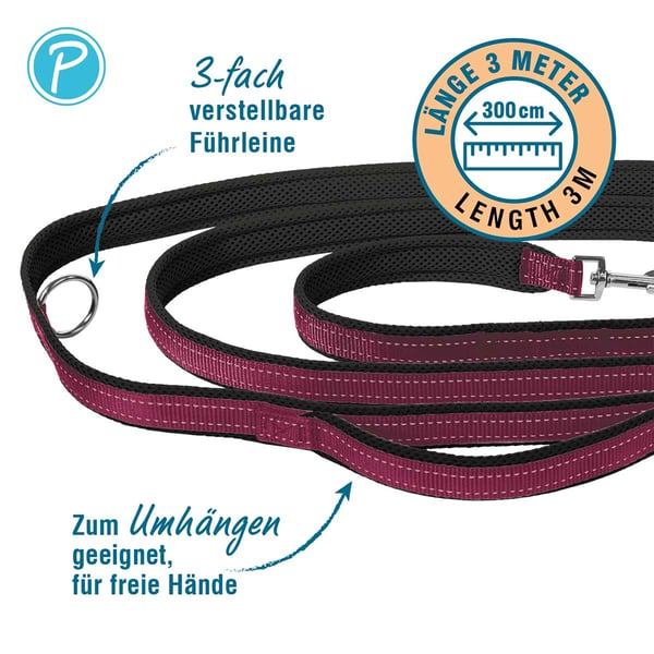 Die Petlando Outdoor Führleine ist 3-fach verstellbar, sodass du sie je nach Bedarf anpassen kannst. Ob du deinen Hund nah bei dir führen oder ihm mehr Freiraum geben möchtest, diese Leine passt sich deinen Wünschen an. Der durchgängige Mesh-Einsatz sorgt für zusätzlichen Komfort und verhindert unangenehmes Scheuern, selbst bei längeren Spaziergängen. Die Leine ist außerdem zum Umhängen geeignet, was dir die Hände frei macht, wenn du sie gerade nicht benötigst.