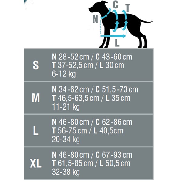 | M | 34 - 62 cm | 51,5 - 73 cm | 46,5 - 63,5 cm | 35 cm | 11 - 21 kg |