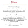 Zusatzstoffe:Vitamin A 20000 IE/kg, Vitamin D3 1100 IE/kg, Vitamin E 95 IE/kg, Eisen-(II)-sulfat Monohydrat (Fe) 83 mg/kg, Calciumjodat, wasserfrei (I) 2 mg/kg, Kupfer-(II)-sulfat Pentahydrat (Cu) 9,2 mg/kg, Mangansulfat Monohydrat (Mn) 6,3 mg/kg, Zinksulfat Monohydrat (Zn) 120 mg/kg, Natriumselenit (Se) 0,2 mg/kg, Antioxidantien vorhanden, Farbstoffe ohne hinzugefügte Farbstoffe, Konservierungsstoffe vorhanden