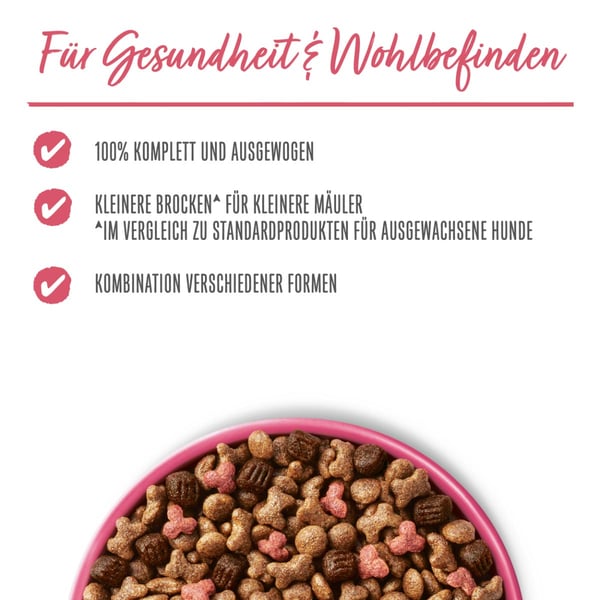 PURINA BENEFUL Kleine Genießer Trockenfutter ist die ideale Wahl für Hunde kleiner Rassen. Die speziell entwickelten kleinen Brocken passen perfekt in kleine Hundemäuler und bieten ein schmackhaftes Erlebnis. Mit der Kombination aus Rind und Gartengemüse erhält dein Hund eine ausgewogene Ernährung, die auf seine Bedürfnisse abgestimmt ist.