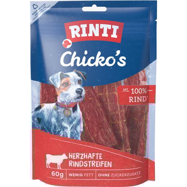 RINTI Chicko's Rind bietet deinem Hund einen Snack, der durch die Echtfleisch-Garantie überzeugt. Die Rindstreifen bestehen aus frischem, magerem Rindfleisch und werden ohne Fleischmehle oder Soja hergestellt. Diese hochwertige Zusammensetzung sorgt für einen natürlichen und unverfälschten Genuss, den dein Hund lieben wird.