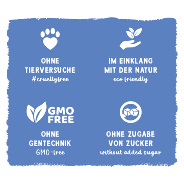Zusatzstoffe:Vitamin E: 25 mg, Biotin: 25 μg, Taurin: 450 mg, Zink als Zinkoxid: 20 mg, Jod als Kalziumjodat, wasserfrei: 0,75 mg