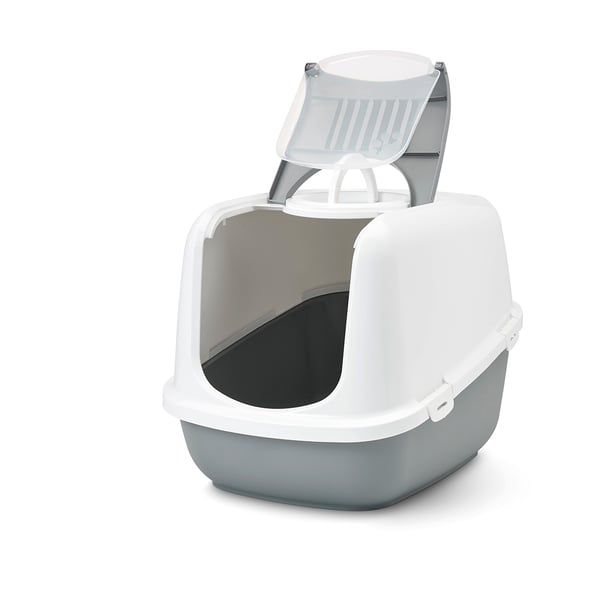Der Nestor Jumbo ist ideal für große Katzenrassen oder Haushalte mit mehreren Katzen geeignet. Sein erhöhter Rücken verhindert das Auslaufen von Streu, was die Hygiene in deinem Zuhause verbessert. Die integrierte Schwingtür ermöglicht deinen Katzen einen einfachen Zugang, während der Tragegriff den Transport erleichtert. Der austauschbare Kohlefilter sorgt dafür, dass unangenehme Gerüche effektiv absorbiert werden.
