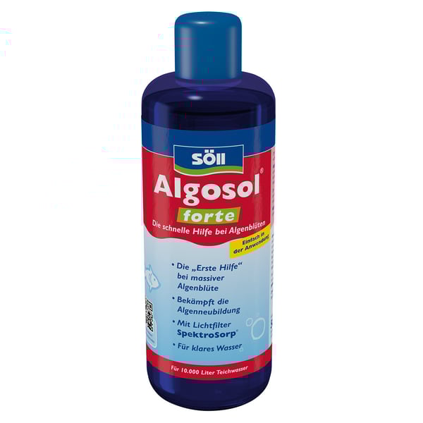 Söll Algosol forte bietet dir eine leistungsstarke Lösung zur Kontrolle von Algenwachstum in deinem Teich. Mit seiner hohen Konzentration und schnellen Wirkung ist es ideal, um hartnäckige Algen-Blüten, insbesondere grünes Wasser durch Schwebealgen, effektiv zu bekämpfen. Die Anwendung von Algosol forte hilft dir, ein biologisches Gleichgewicht im Gewässer zu erhalten, indem es die Algenentwicklung nachhaltig unterdrückt.
