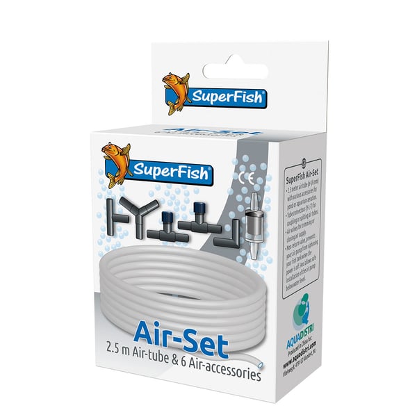 Das SuperFish Luftschlauch & Zubehör Set bietet alles, was du für eine effektive Luftversorgung in deinem Aquarium benötigst. Mit einem 2,5 Meter langen Luftschlauch und verschiedenen Schlauchanschlüssen (Y-L-T) kannst du die Luftzufuhr optimal anpassen und verteilen. Die enthaltenen Luftventile ermöglichen eine präzise Regulierung oder das Schließen der Luftversorgung.