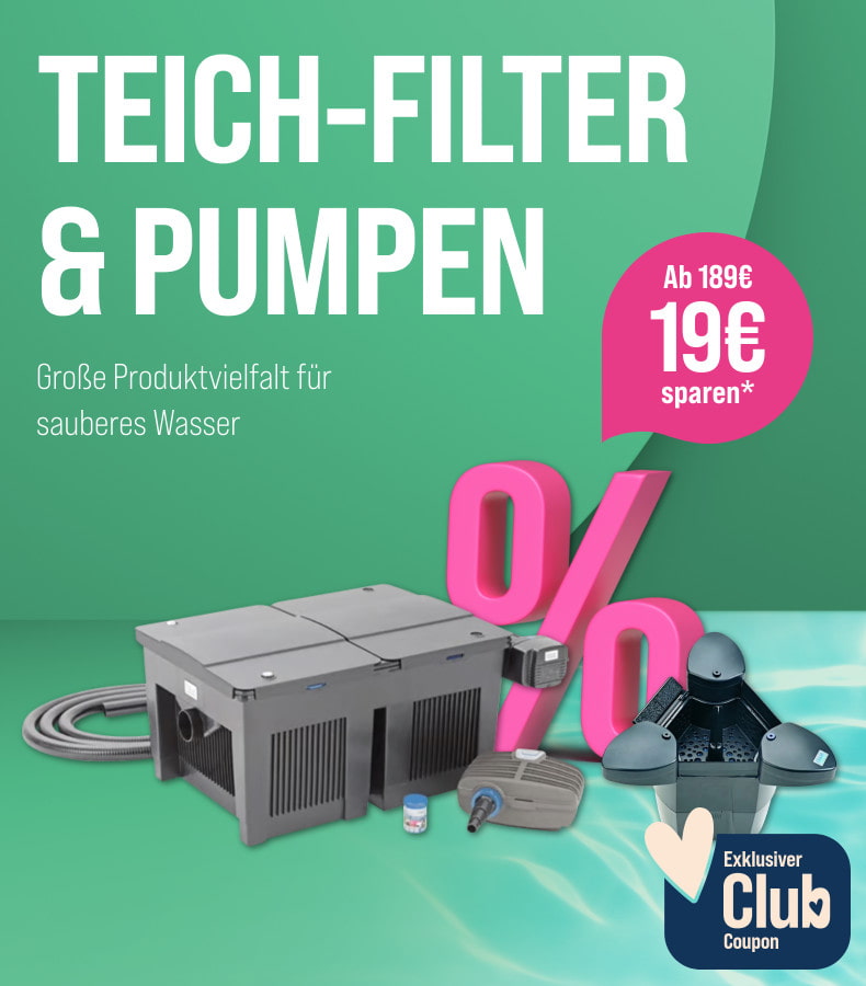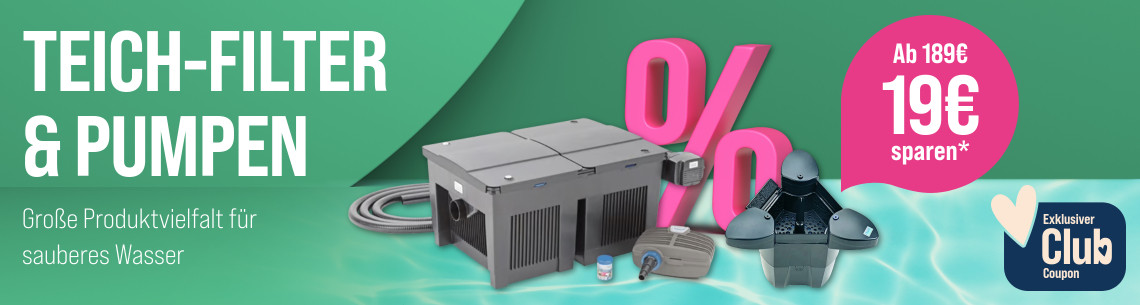 *Gültig vom 25.08.2025 bis 26.10.2025 nur für ZooRoyal Club Mitglieder. 19 € Rabatt ab 189 € auf Filter und Pumpen. Gilt nur im ZooRoyal Online-Shop und nicht in den ZooRoyal Fachmärkten.