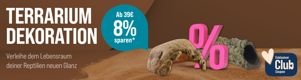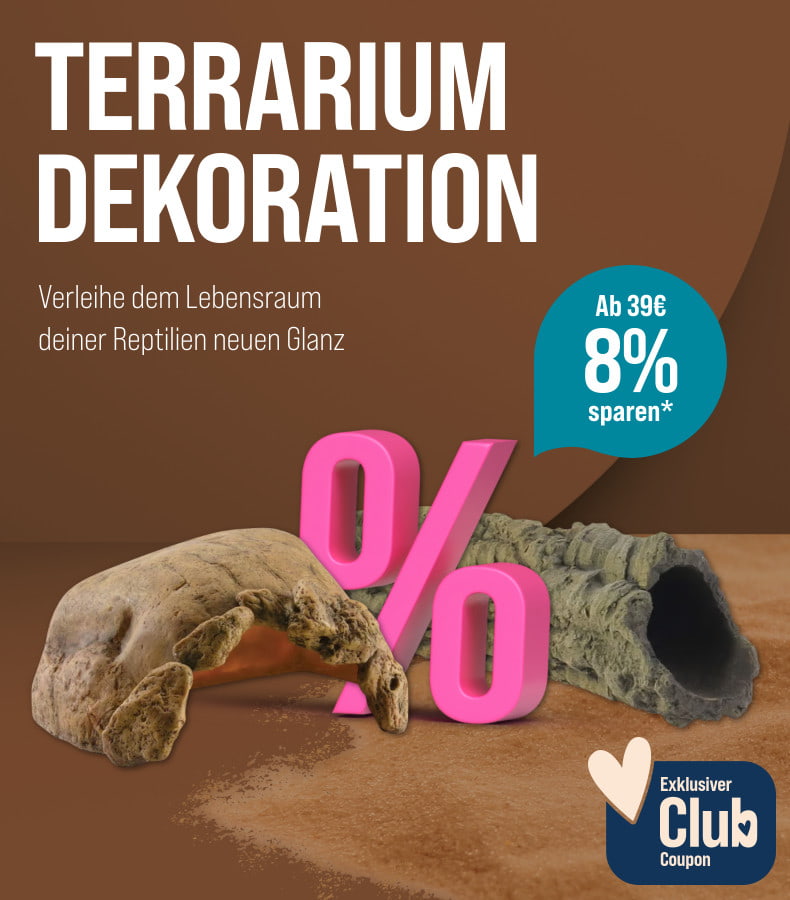 *Gültig vom 29.10.2025 bis 04.01.2026 und nur für ZooRoyal Club Mitlieder. 8% Rabatt ab 39€ auf Terrarien Deko. Gilt nur auf ausgewählte Produkte dieser Aktionsseite. Gilt nur im ZooRoyal Online-Shop und nicht in den ZooRoyal Fachmärkten.