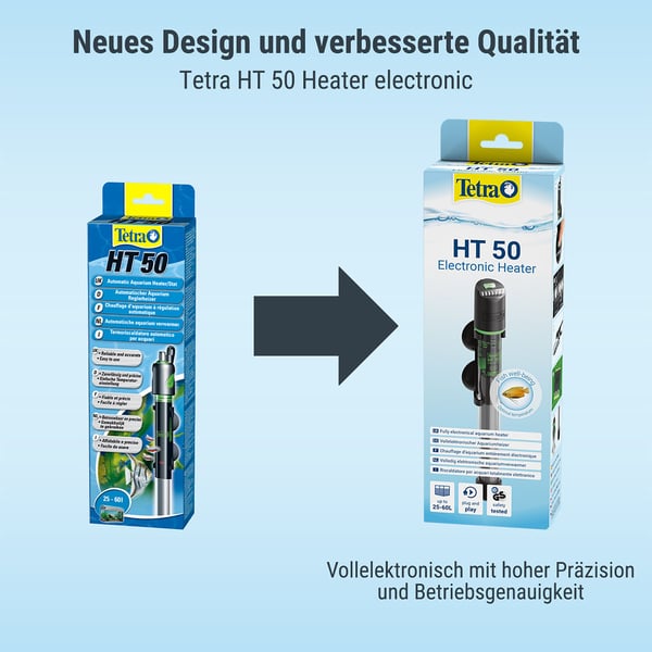 Der Tetra HT Heater Electronic ist mit einem hitze- und stoßfesten Borosilikatglasrohr ausgestattet, das in Kombination mit der integrierten Sicherheitsabschaltung für maximale Sicherheit sorgt. Die robuste Konstruktion gewährleistet eine lange Lebensdauer und Schutz für deine Fische.