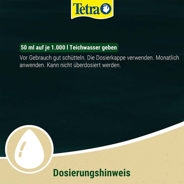 Der Tetra Pond Schlammentferner baut in Ihrem Teich zuverlässig organischen Bodenschlamm ab. Die enthaltenen hochaktiven Bakterien und Enzyme unterstützen das biologische Gleichgewicht. Die Sichttiefe im Teich wird durch den Abbau deutlich optimiert. Auch die Reinigungsintervalle können mittels des Tetra Pond Schlammentferners verlängert werden. Empfehlenswert ist die Anwendung des Produktes insbesondere bei starkem Laubfall und höherem Fischbesatz. Mehr noch sollten Sie eine Teichbelüftung verwenden, da bei dem Abbau der Verunreinigungen Sauerstoff verbraucht wird.