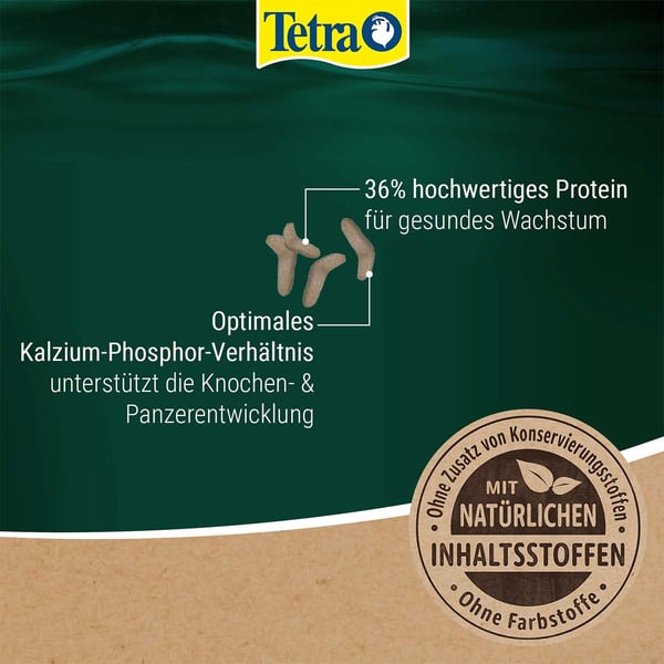 Die speziell entwickelte Rezeptur von Tetra ReptoMin setzt auf natürliche Inhaltsstoffe und verzichtet auf künstliche Farbstoffe und Konservierungsstoffe. Diese hochwertige Zusammensetzung sorgt dafür, dass deine Schildkröte nur die besten Nährstoffe erhält. Das optimale Kalzium-Phosphor-Verhältnis unterstützt zudem die Entwicklung von starken Knochen und einem gesunden Panzer.