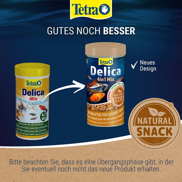 Der Tetra Delica Mix eignet sich hervorragend als kleine Zwischenmahlzeit zur Fütterung von Zierfischen. Das qualitativ hochwertige Fischfutter garantiert eine artgerechte und abwechslungsreiche Nahrungsversorgung. Der hohe Anteil an Proteinen versorgt Ihre geliebten Tierchen mit zusätzlicher Energie. Der Mineralanteil bietet natürliche Ballaststoffe, die eine gesunde Verdauung unterstützen. Der Grammarus-Gehalt sorgt dafür, dass die Farbenpracht Ihrer Zierfische intensiviert wird.