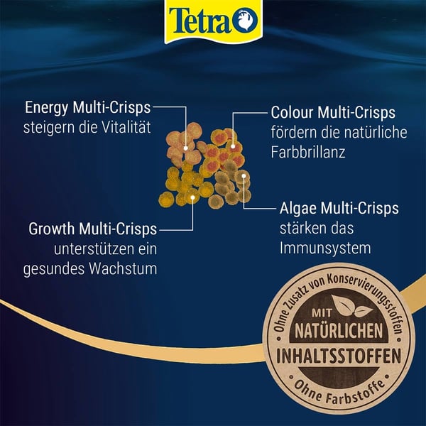Zubereitet wird das Futter über ein spezielles Niedrigtemperatur-Schonverfahren, das einen hohen Vitamin- und Nährstoffgehalt garantiert. Die tolle Crisps-Form der Futterflocken sorgt zudem dafür, dass das Aquarium-Wasser nur sehr mäßig belastet wird.