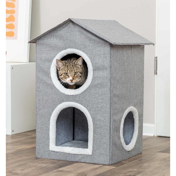 Die Trixie Katzenhöhle Nora bietet deinem Stubentiger einen gemütlichen Rückzugsort mit zwei einladenden Etagen. Das moderne, hellgraue Design aus weichem Webstoff fügt sich harmonisch in dein Zuhause ein und schafft einen wohltuenden Platz zum Dösen und Schlafen. Mit dieser Höhle erhält deine Katze einen idealen Platz, um sich zu entspannen und zur Ruhe zu kommen.