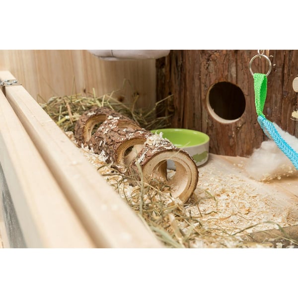 Der Trixie Kleintiertunnel aus Naturholz bietet deinem kleinen Haustier einen natürlichen und sicheren Rückzugsort. Gefertigt aus Rindenholz, ist er besonders für Hamster und Mäuse geeignet. Die natürliche Beschaffenheit des Holzes schafft eine angenehme Umgebung, in der sich dein Tier wohl und geborgen fühlt.
