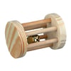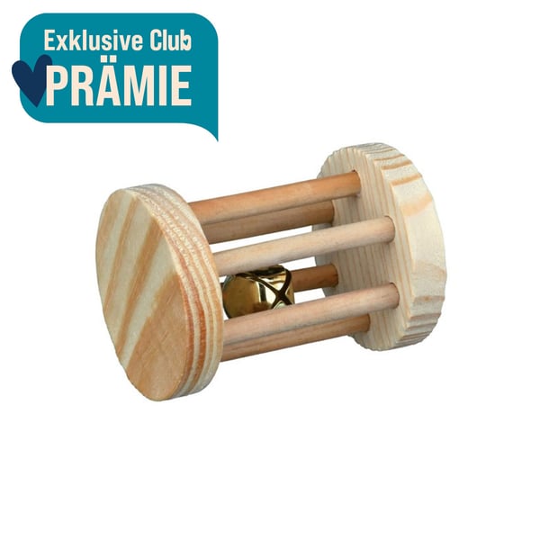 Diese Spielrolle besteht aus zwei runden Platten, die mit Stäben verbunden sind. Innerhalb dieser Stäbe befindet sich eine Schelle, die einen Ton von sich gibt, sobald das Kleintier die Spielrolle anstubst. Das Geräusch der Schelle wird das Kleintier immer wieder aufs Neue locken, so dass ein langes Spielvergnügen garantiert ist. Das Annagen der Rolle ist für das Kleintier ungefährlich, da sie aus unbehandeltem Holz besteht.