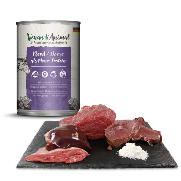 Venandi Nassfutter versorgt Ihre Katze mit allen wichtigen Nährstoffen und ist durch seine natürlichen und delikaten Zutaten äußerst schmackhaft. Der hohe Fleischanteil jedes Menüs stammt aus einer Proteinquelle, was selbst bei Katzen mit empfindlicher Verdauung zu einer sehr hohen Verträglichkeit führt. Neben frischem Muskelfleisch sind nahrhafte Innereien enthalten, die auf natürliche Weise den Bedarf an Vitaminen und Mineralstoffen decken.