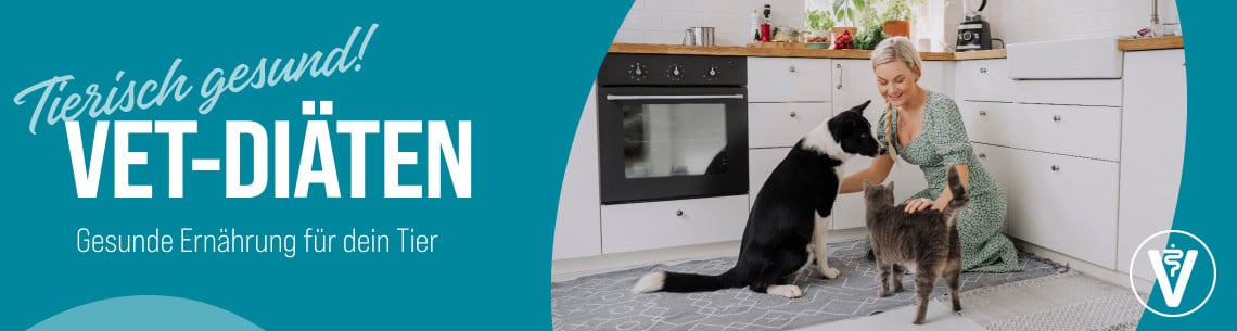 VET Diätfutter ist grundsätzlich für Hunde und Katzen aller Größen und Rassen geeignet. Bevor du deinem Haustier Diätnahrung anbietest, solltest du stets Rücksprache mit deinem Tierarzt halten.