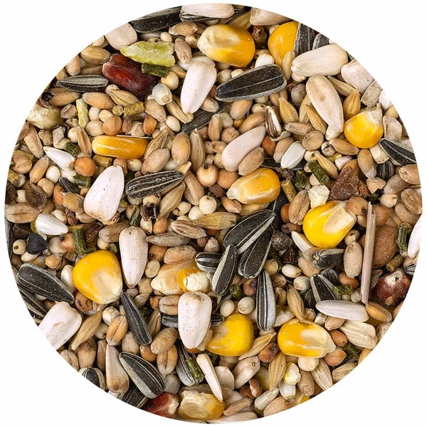 Getreide* (roter Mais 4%), Saaten* (Sonnenblumenkerne 20,5%), Mineralstoffe*, Gemüse* (Erbsen, getrocknet 1,5%, Karotten, getrocknet 1%), Nüsse* 1%, Petersilie, getrocknet* 0,5%, Thymian, getrocknet* 0,25%, Spitzwegerich, getrocknet* 0,25%, Öle und Fette, Hefen (Beta Glucane 80mg/kg), *=natural ingredients