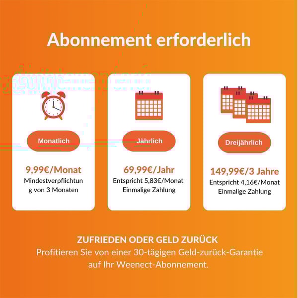 - Monatliches Abonnement: 12,99€ pro Monat. Die Zahlung erfolgt monatlich und die Kündigung ist jederzeit möglich.