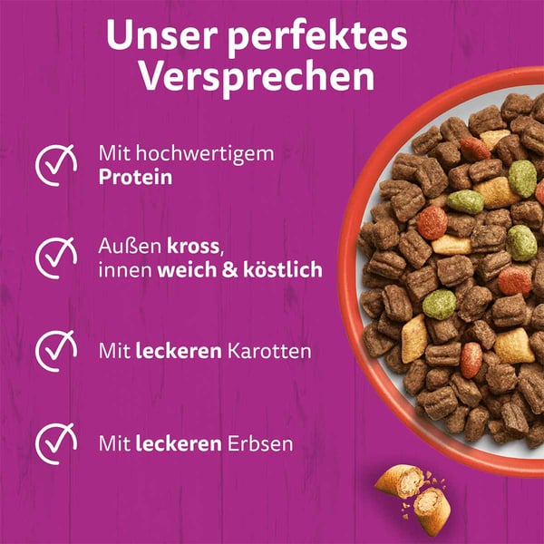 Unsere leckeren WHISKAS 1+ Knackits mit Rind werden sorgfältig zubereitet, um deiner Katze alles zu geben, was sie zum Schnurren braucht. Hergestellt aus hochwertigen Zutaten, die nur von vertrauenswürdigen Lieferanten bezogen werden. Unsere köstlichen Rezepte sorgen dafür, dass deine Katze glücklich und gesund bleibt & bei jeder Mahlzeit zum Napf rennt. Die Textur dieses hochwertigen Trockenfutters unterstützt die Zahnpflege deiner Katze durch einen sanften Abriebeffekt. Hochwertiges WHISKAS-Trockenfutter für Katzen ab 1 Jahr, das auf die Bedürfnisse deines Lieblings abgestimmt ist. Das schmackhafte und ausgewogene Adult Katzenfutter mit Rind kommt im 3,8kg-Beutel.