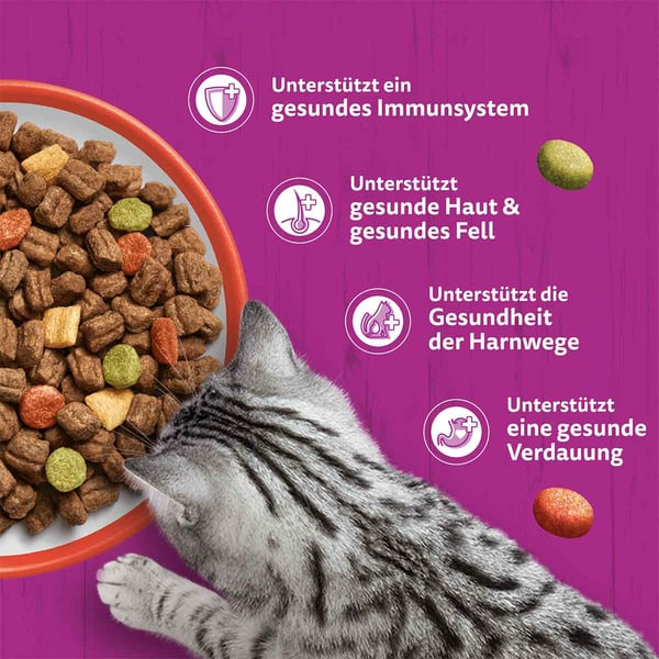 • Köstliches Trockenfutter geeignet für ausgewachsene Katzen ab 1 Jahr.